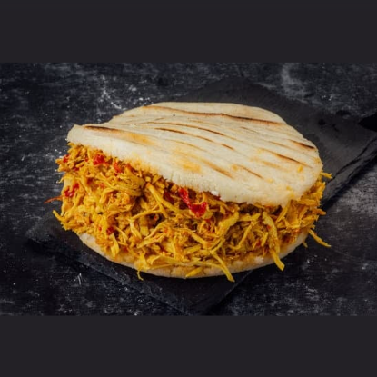 AREPA RELLENA MIXTA Carne desmechada, pollo desmechado, champiñón, queso, huevo de codorniz, salsas