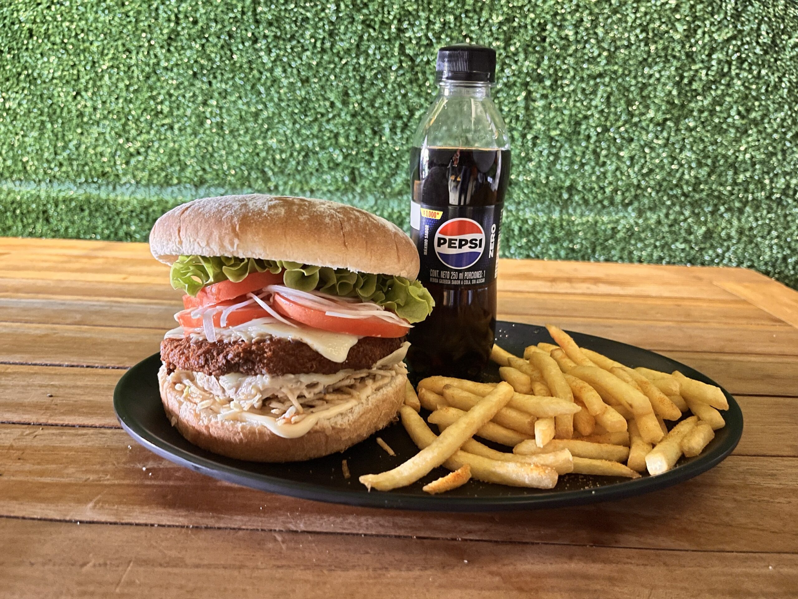 / MASTER COMBO Carne, tomate, cebolla caramelizada, lechuga, queso, papa chips, salsas
